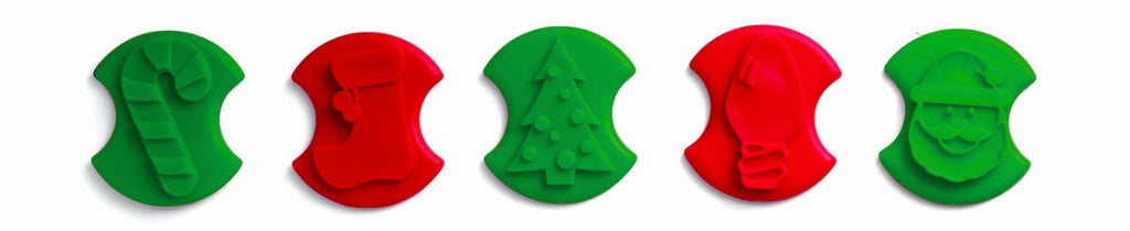 Round Cookie Cutter with 5 different interchangeable Christmas themed stamps to emboss your cookies. Eat 'em naked or decorate with ease thanks to the embossed pattern.
